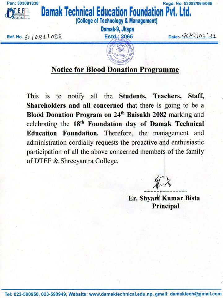 On the occasion of the 18th Foundation Day of Damak Technical Education Foundation (DTEF), a Blood Donation...